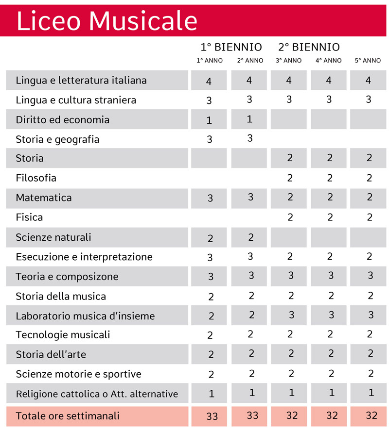 Il liceo Musicale si rivolge a studenti che desiderano sviluppare competenze spendibili anche in professioni inerenti l’arte musicale. L’offerta formativa, oltre a comprendere materie proprie del liceo scientifico, è caratterizzato dalla presenza di discipline specifiche di indirizzo.